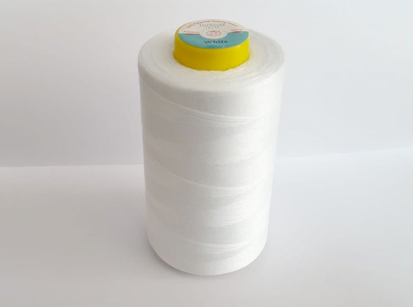 Turkuaz 120 numara polyester dikiş ipliği, beyaz renkte bir dikiş malzemesidir. Kaliteli ve dayanıklı yapısıyla dikkat çeker.